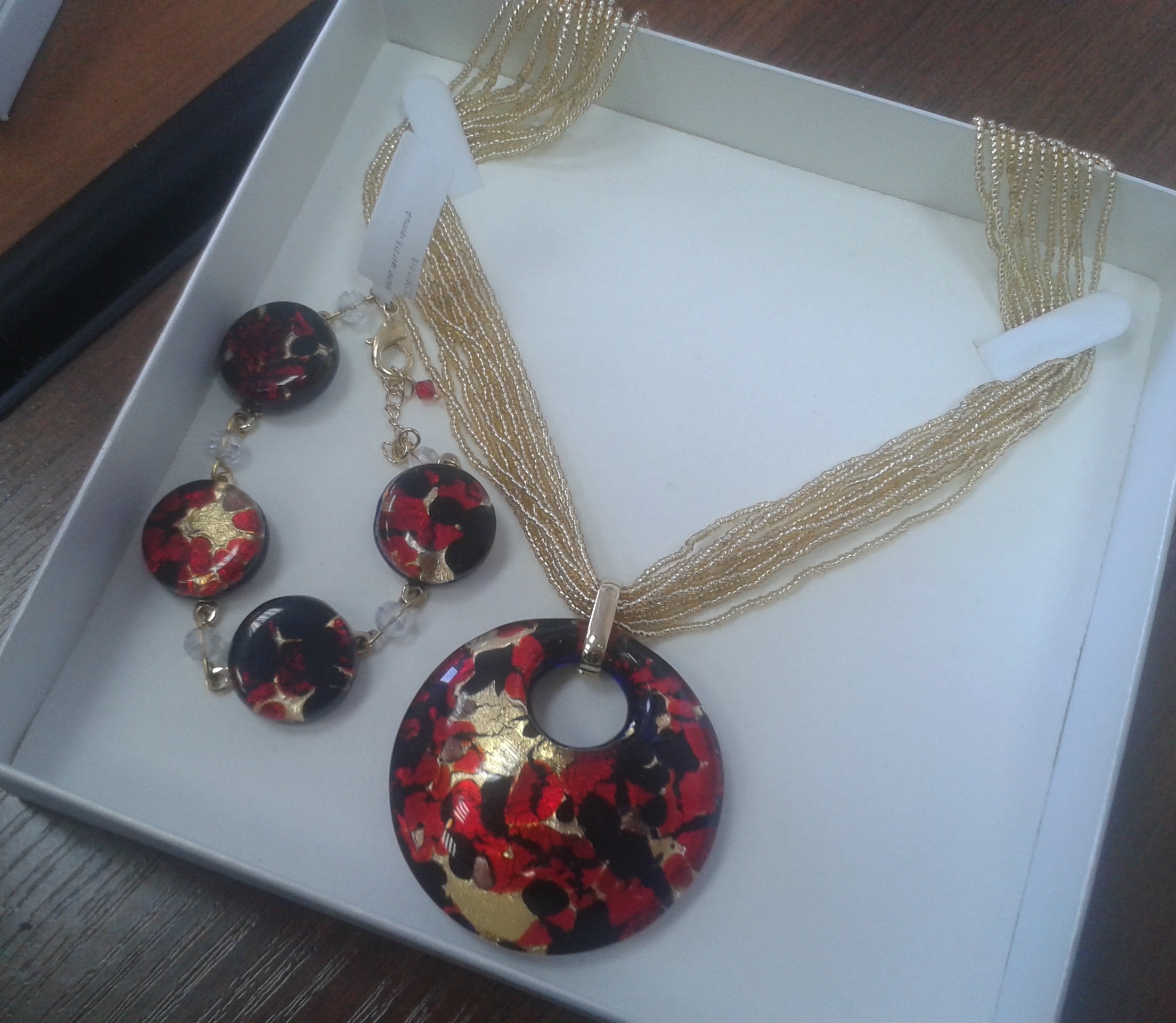 Комплект, пуссеты с кулоном D 50 на бисере - 1800 руб.