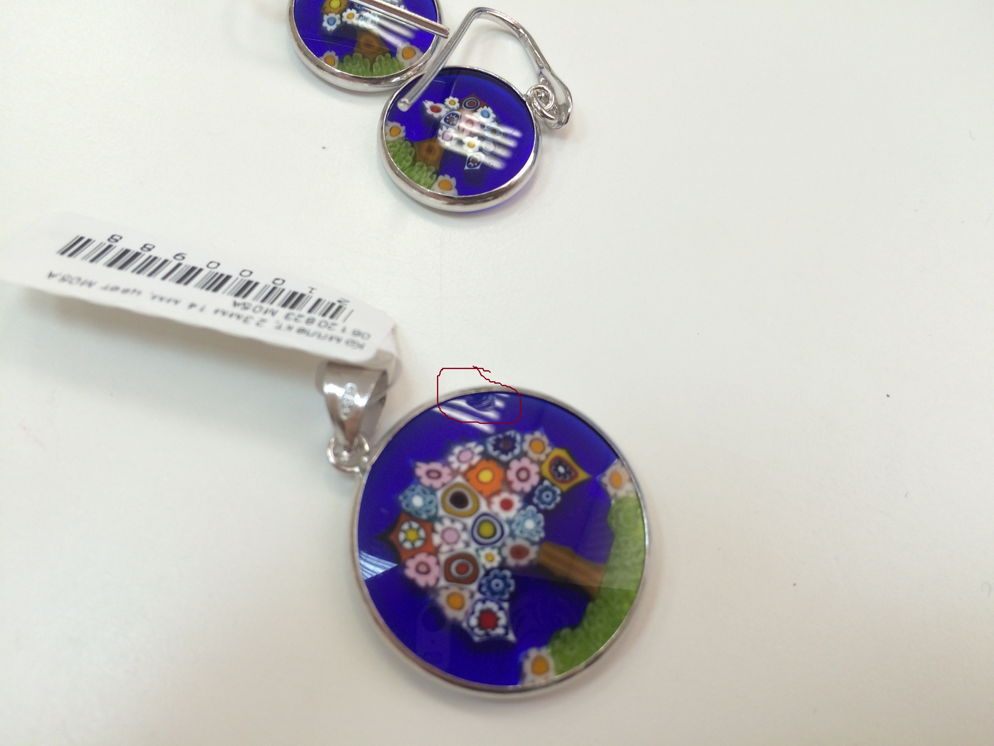 Для создания подвесок и сережек в технике Millefiori используются мур*рины (Mur*rina) - крошечные кусочки стекла, напоминающие цветочки. Производятся такие в виде длинных прутов, которые затем нарезаются поперек. Из получившихся элементов мастер выкладывает тонкий узор, который после заливают с двух сторон прозрачным стеклом и запекают. Под воздействием высокой температуры каждая мур*рина внутри мозаики по-своему раскрывается, и рисунок становится уникальным.