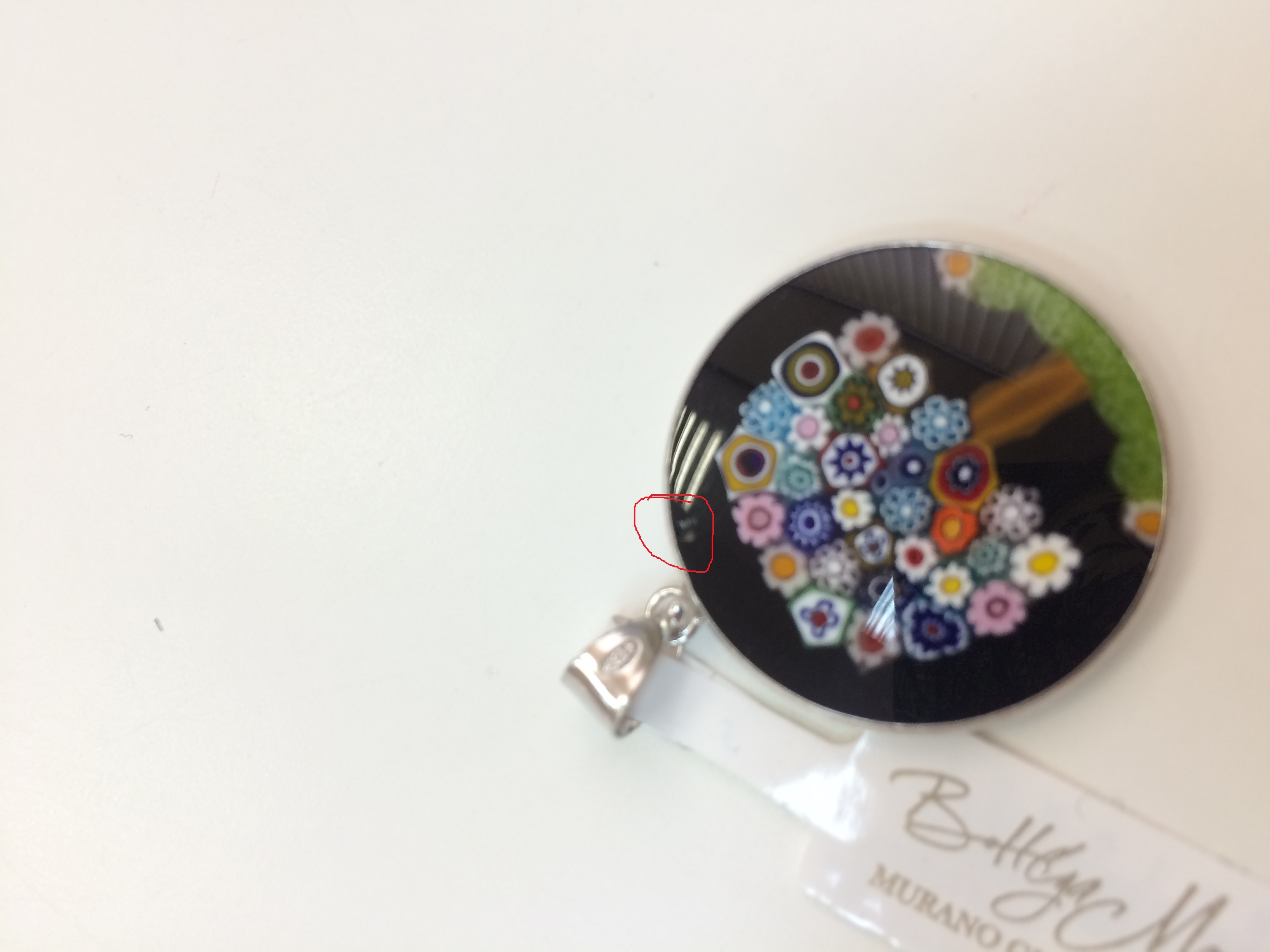 Для создания подвесок в технике Mille*fiori используются мур*рины (Mur*rina) - крошечные кусочки стекла, напоминающие цветочки. Производятся такие <<цветы>> в виде длинных прутов, которые затем нарезаются поперек. Из получившихся элементов мастер выкладывает тонкий узор, который после заливают с двух сторон прозрачным стеклом и запекают. Под воздействием высокой температуры каждая муррина внутри мозаики по-своему раскрывается, и рисунок становится уникальным.