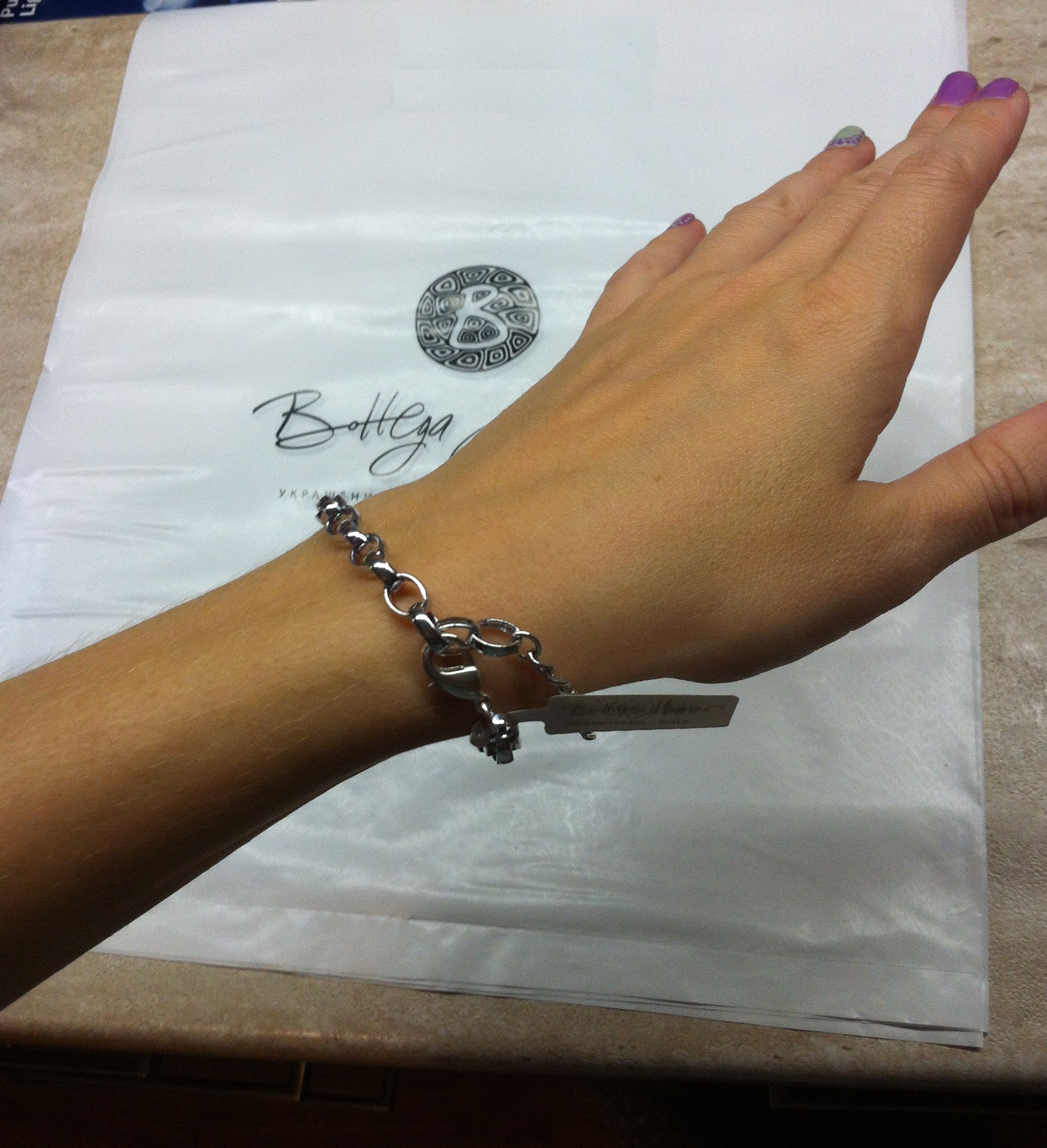 На более узкое запястье можно застегивать не на последнее звено. Например, на фото запястье 16 см, браслет застегнут на третье звено