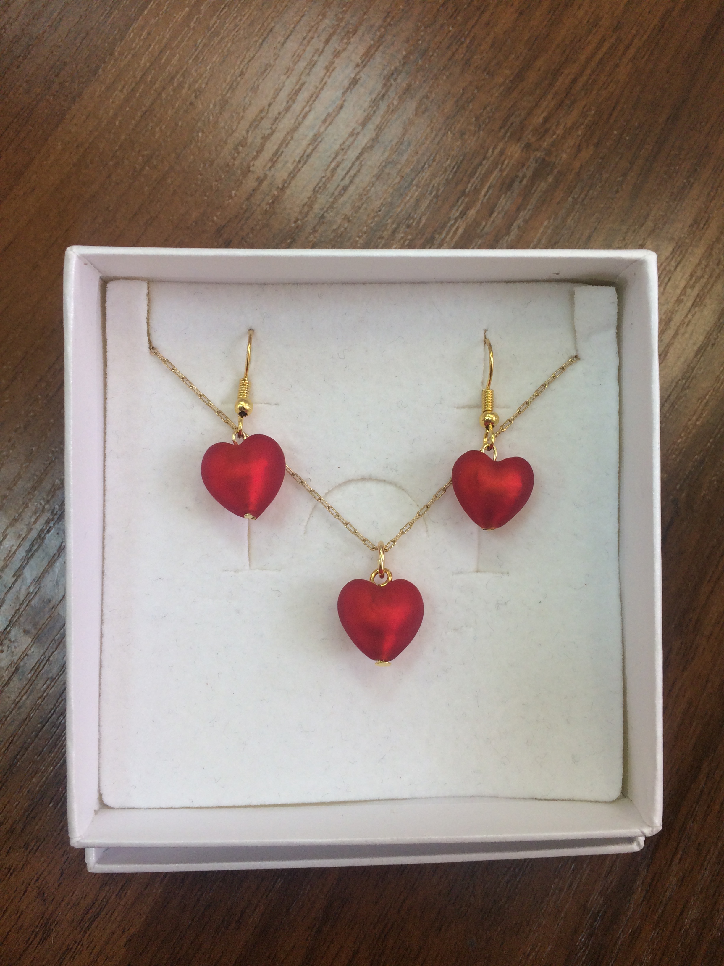 можем разбить комплекты - кулон с цепочкой и коробочкой 560 руб, сережки отдельно 400 руб.